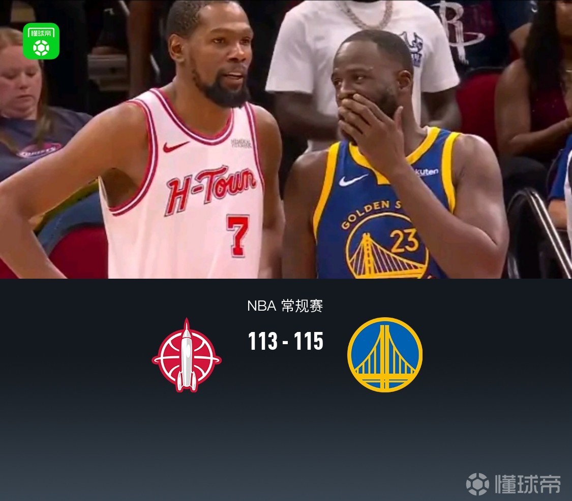 北京时间3月6日NBA 常规赛,休斯顿火箭对阵金州勇士。首节勇士取得10分领先,半场火箭47-51勇士,下半场双方持续拉锯,101平进入加时,加时赛最后阶段杜兰特接连错失关键罚球,最后0.1秒格林直接传球给杜兰特,最终勇士115-113加时险胜火箭。