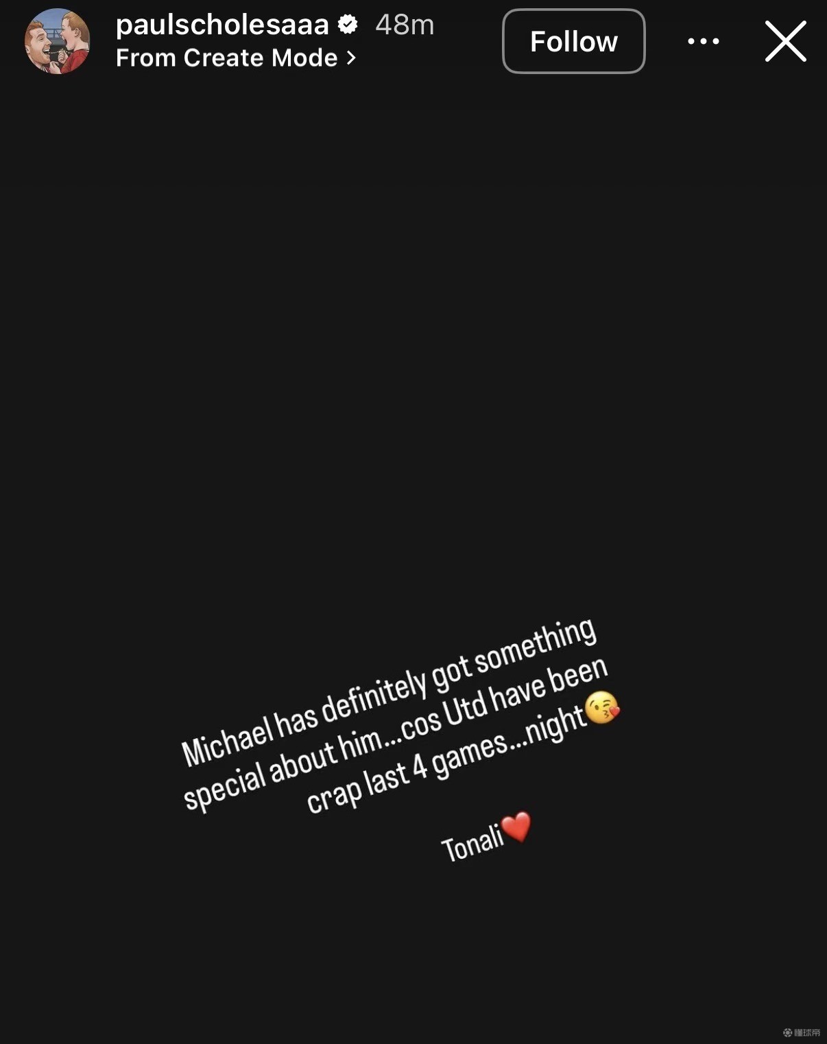 斯科尔斯在社交媒体发表动态,写道:“迈克尔(卡里克)身上肯定有某种特别之处,因为曼联最近四场比赛踢得简直烂透了……晚安 体育 PP体育 聚力体st育 英超直播 西甲 亚冠直播 欧冠直播 德甲直播 欧联杯 CBA 篮球直播 WWE直播 UFC直播 体育直播