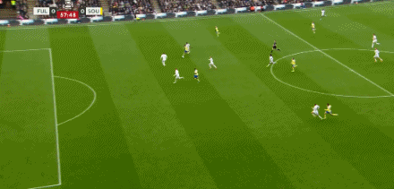 第57分钟,南安普顿绝佳机会,费洛斯直面门将射门被封堵