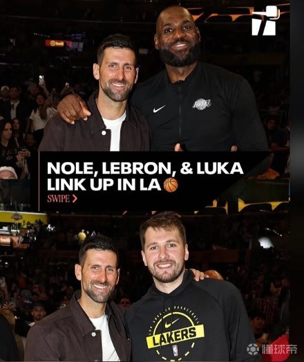 现场观战湖人,德约科维奇晒与詹姆斯和东契奇合照